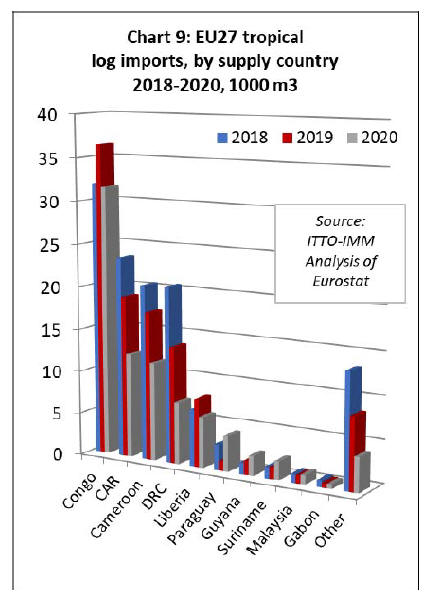 Cameroon (-35% to 25,400 cu.m), Republic of Congo (-