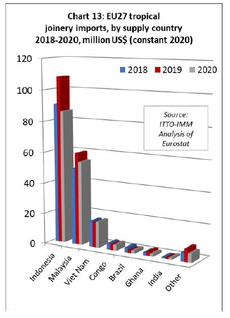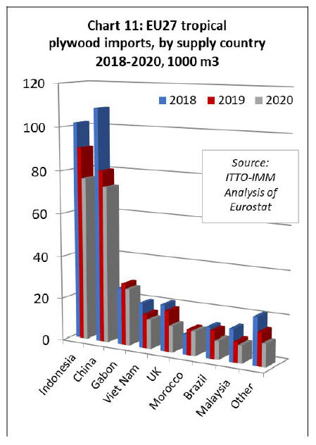 cu.m). EU27 imports of tropical hardwood faced plywood