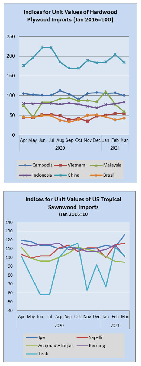 In Canada, imports of sawn tropical hardwood rose 8% in