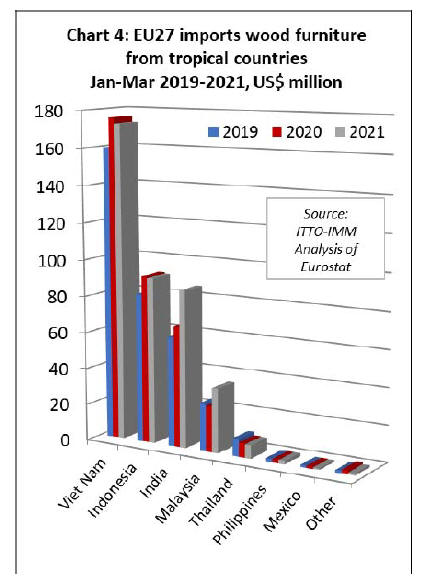 EU27 import value of tropical wood and wood furniture