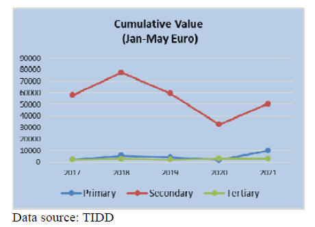 the first 5 minths of 2021 were Burkina Faso, Togo,