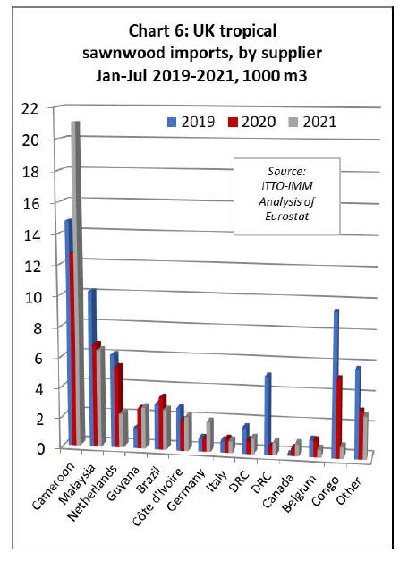 UK imports of Malaysian sawnwood were 6,400 cu.m in
