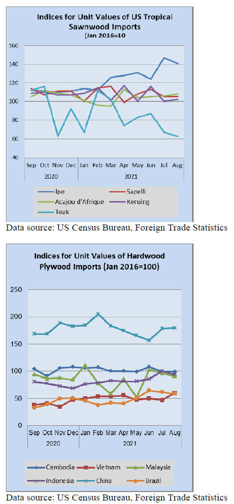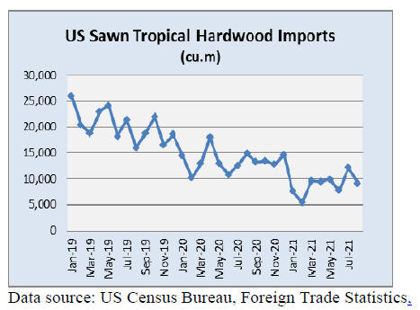 Meanwhile, Canadian imports of sawn tropical hardwood