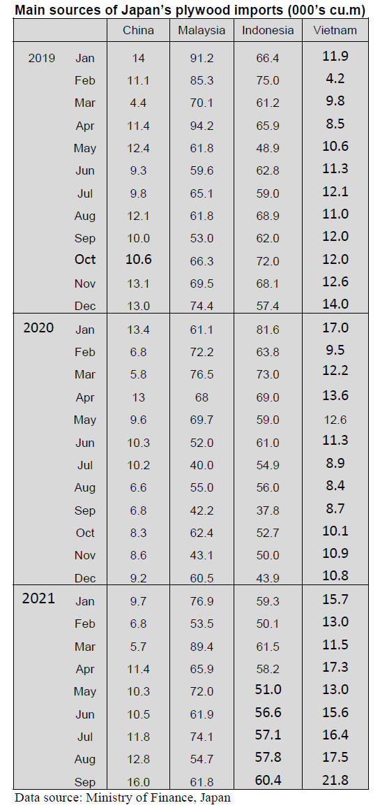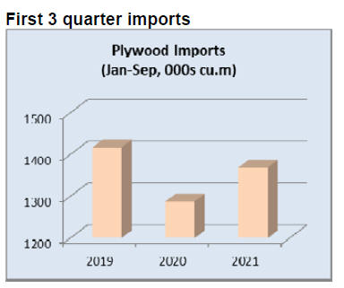 imports of wooden doors (c.f. 61% in Aug.) with a further