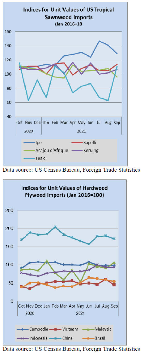 Imports of Virola, Balsa, Sapelli, and Mahogany all