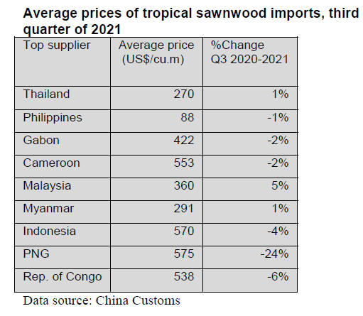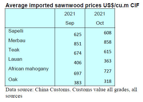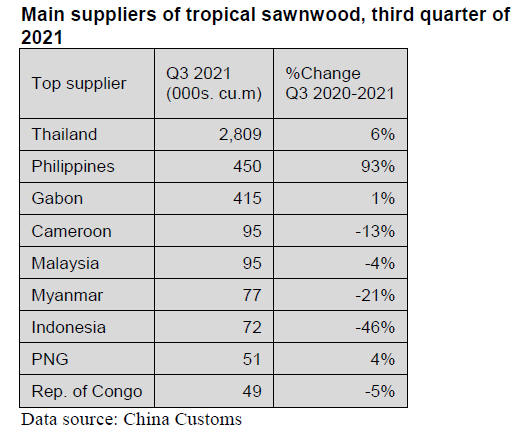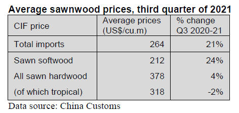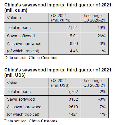 Sawn hardwood imports rose 3% to 6.9 million cubic