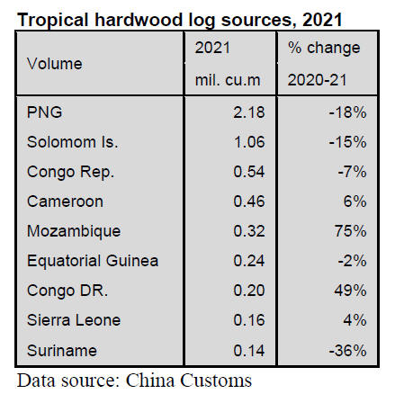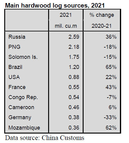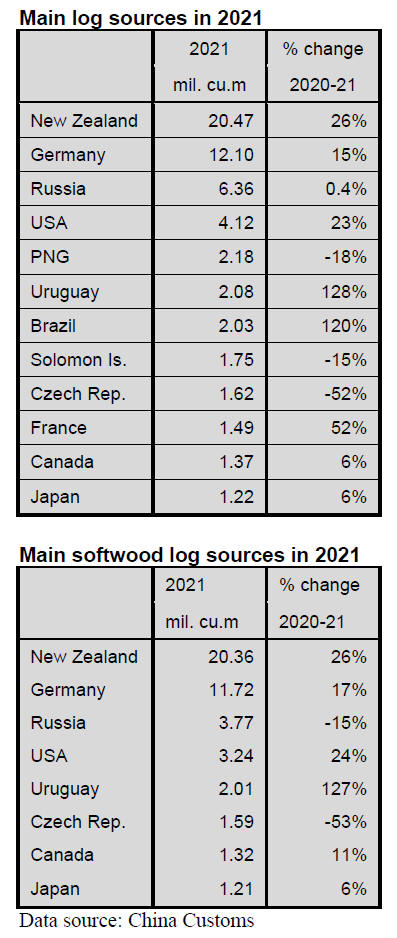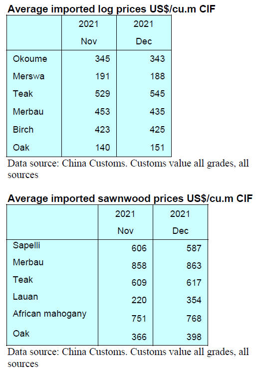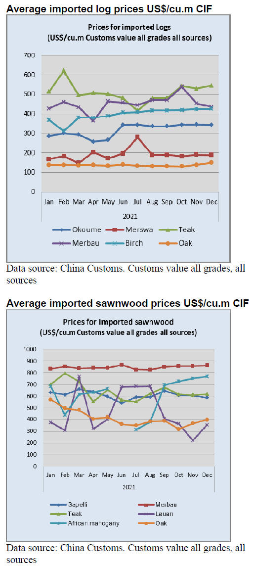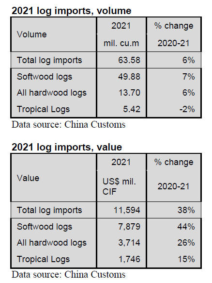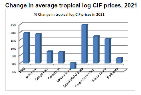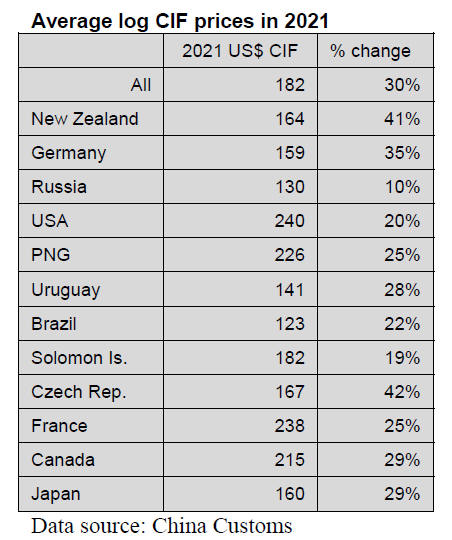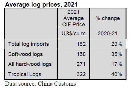 logs in 2021 was US$271 (CIF) per cubic metre, up