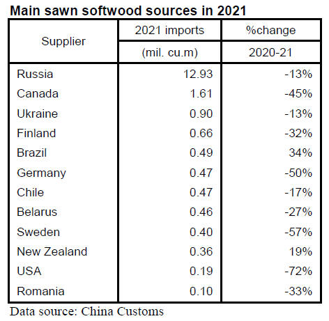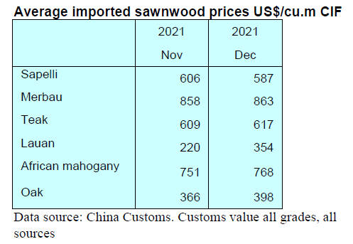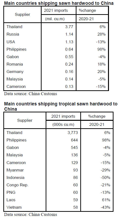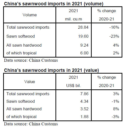 million cubic metres in 2021. China¡¯s sawn hardwood
