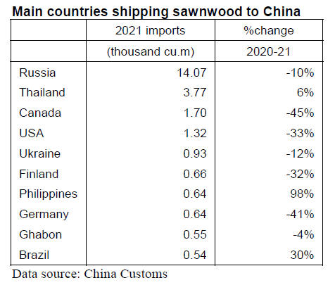 China¡¯s sawn hardwood imports from Thailand and Russia