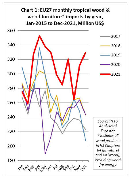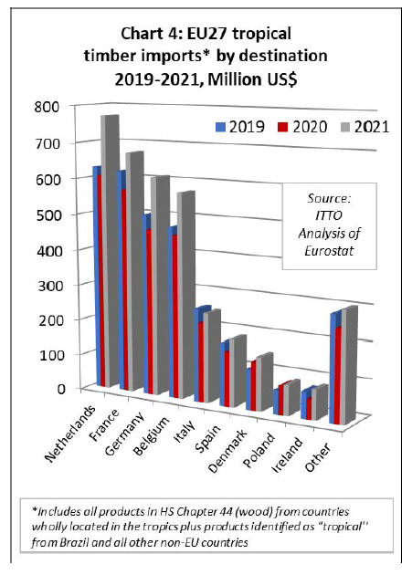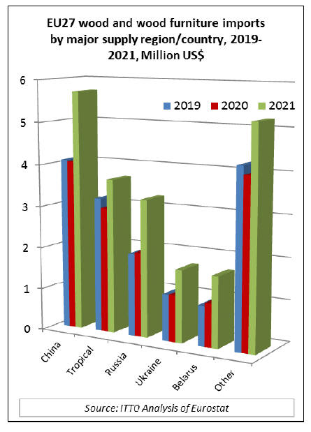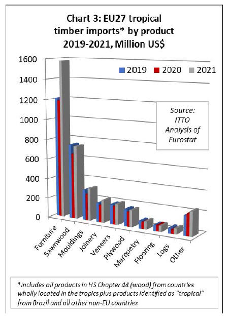 in the EU. In 2021, the EU27 imported wood and wooden