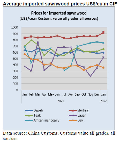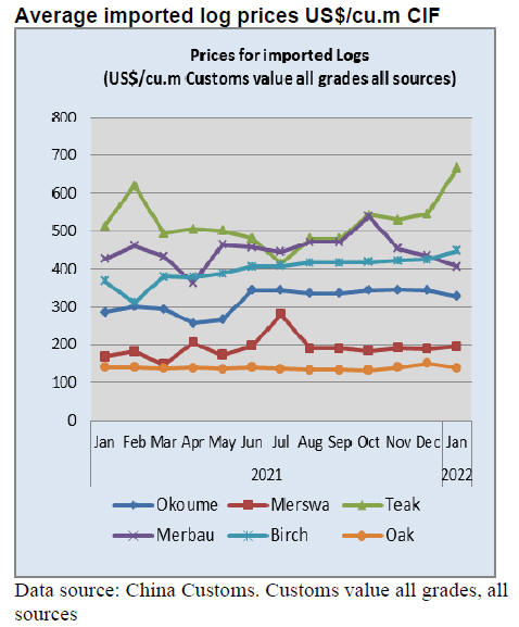from Japan surged 83% to 14,341 cubic metres in 2021.