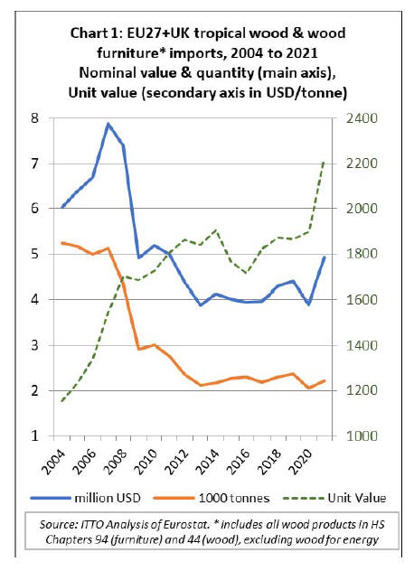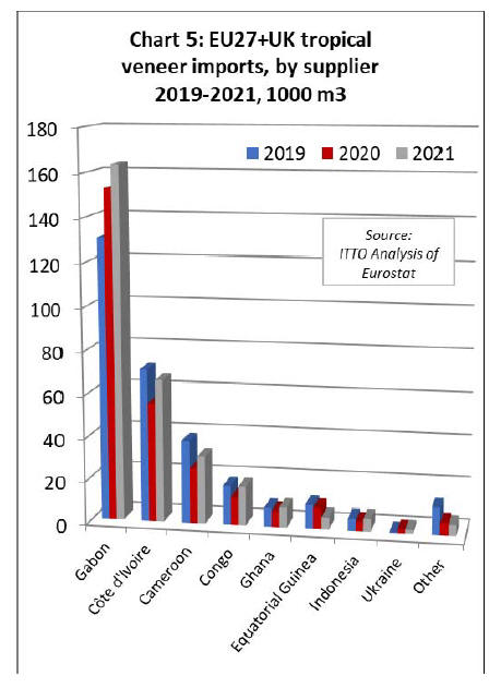 from Ghana were 27,200 cu.m in 2021, a gain of 31%