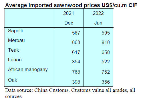 still rising, for example the price for veneer rose from