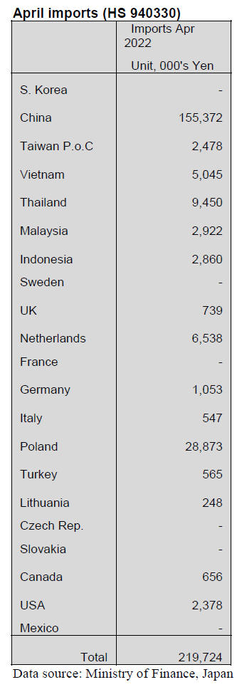furniture (HS940330) imports in April. Compared to a