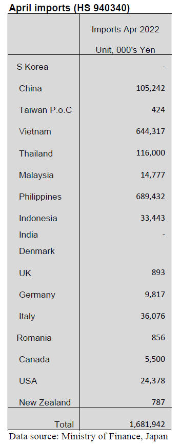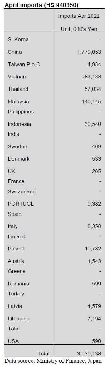 furniture in April 2022 was China accounting for 70% of