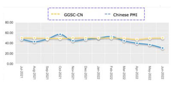 In June 2022 two sub-indexes of GGSC-CN were flat and