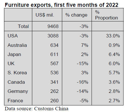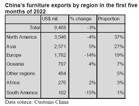 China¡¯s furniture exports to Peru, Brazil and Colombia fell