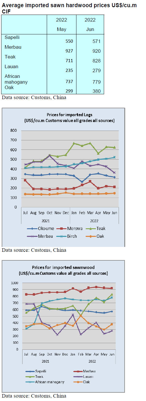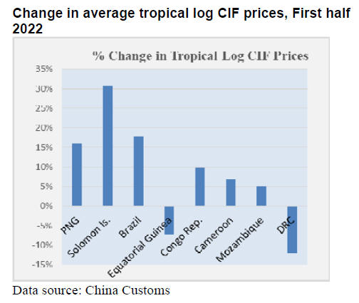First half 2022 CIF prices for most of China¡¯s tropical log