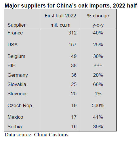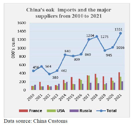 France has been the largest supplier of oak to China since