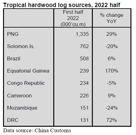 the first half of 2022. China¡¯s tropical log imports from