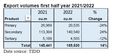 According to export data from the Timber Industry