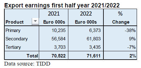 earned Euro 6.37 million, around 9% of total exports.