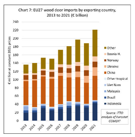 According to Eurostat data the value of wood door