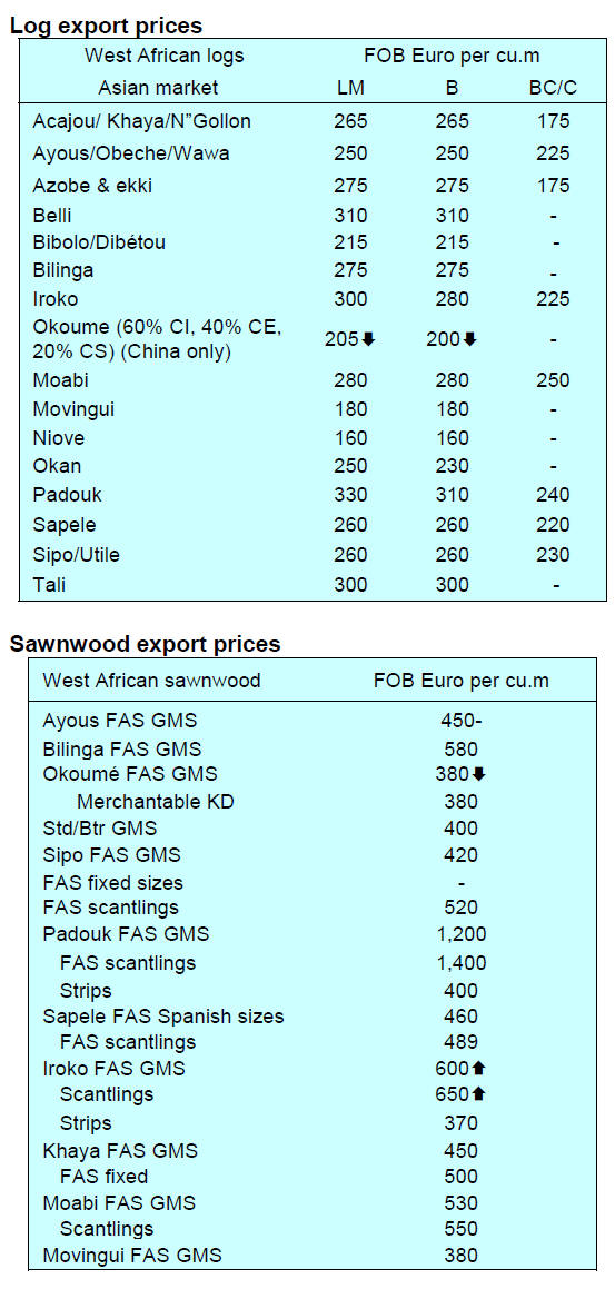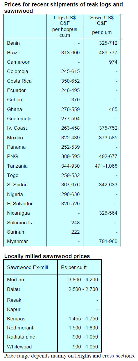 Tropical sawnwood exports increased 1% in volume, from
