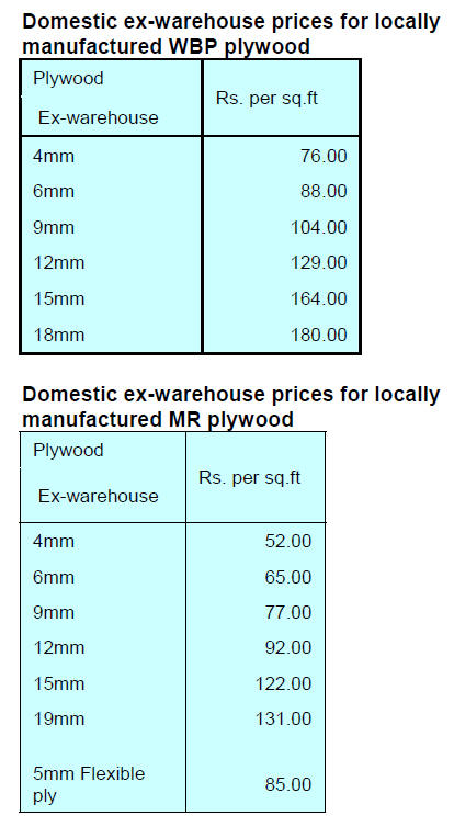 Veneer US$550/cu.m; Wooden Sheet US$900/cu.m