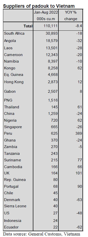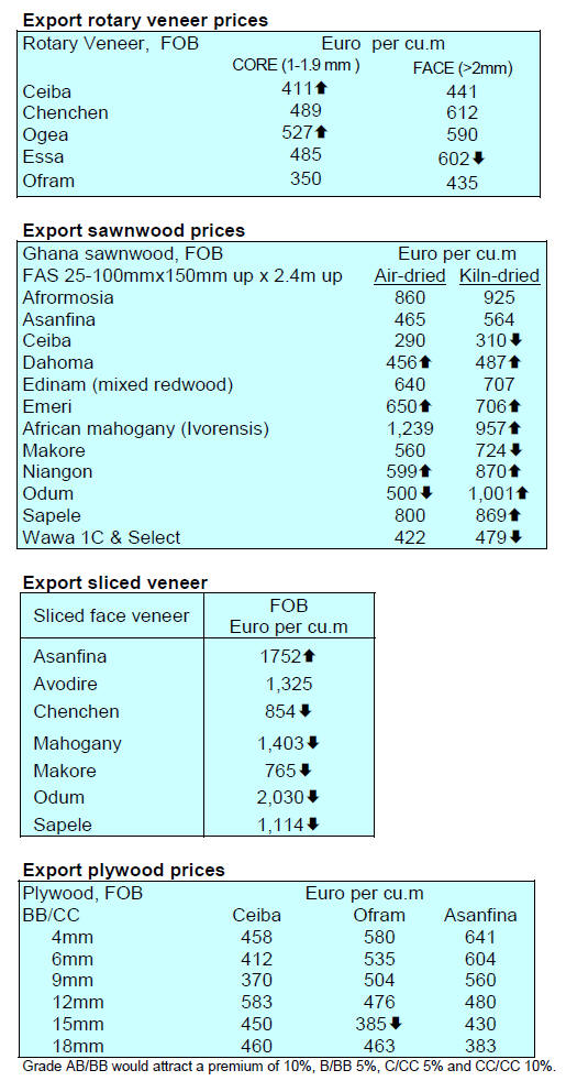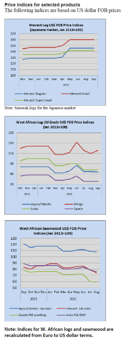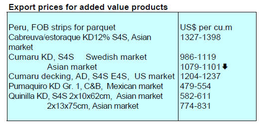 Tropical sawnwood exports declined 14% in volume, from