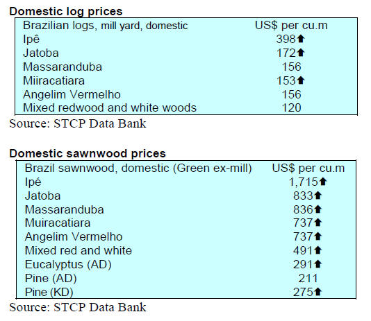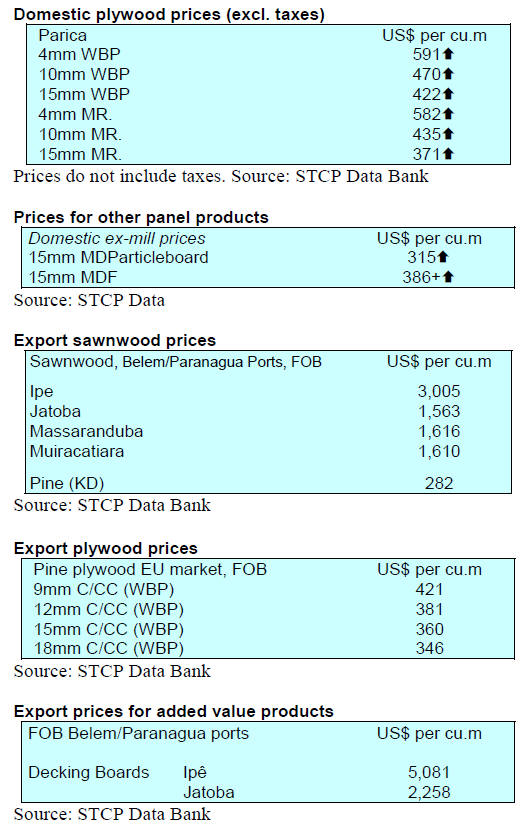 As for tropical plywood, exports dropped in volume by a