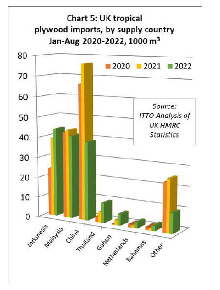 154,600 cu.m of tropical hardwood plywood, 21% less