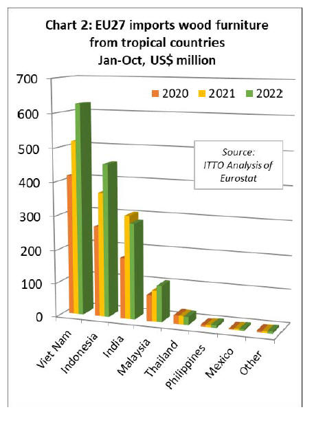 EU27 imported 92,800 tonnes of tropical joinery products,