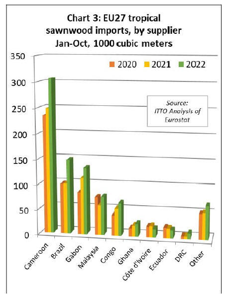 d'Ivoire (+34% to 71,300 cubic metres), Cameroon (+45%
