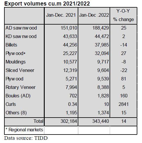 Denya (12,903 cu.m) and Kako/Ekki (2,843cu.m). Thirty