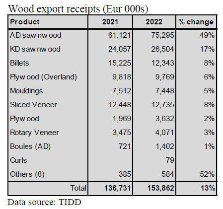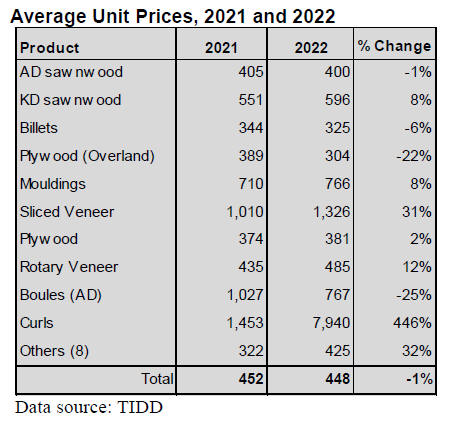 of 188,429 cu.m and curl veneers the lowest at 10 cu.m.