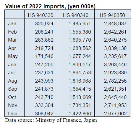 bedroom furniture rose 25% in 2022 compared to 2021.
