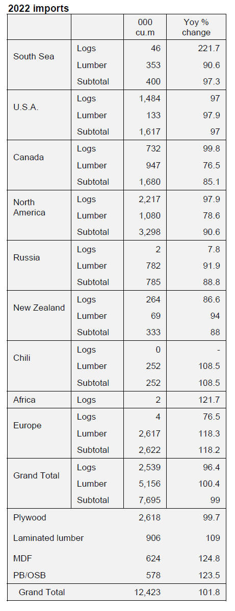 New Zealand logs. Chilean lumber is 20,000 cbms higher