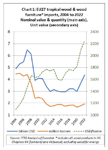 In 2022 the EU27 imported 1.94 million tonnes of tropical