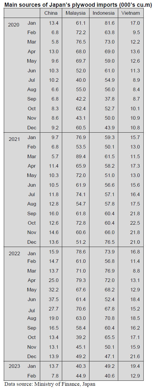volume of Japan’s plywood imports and while this