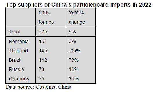 According to China Customs, particleboard imports were