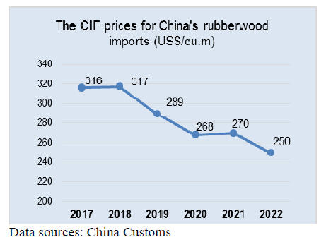 rubberwood, with the average CIF price reaching the