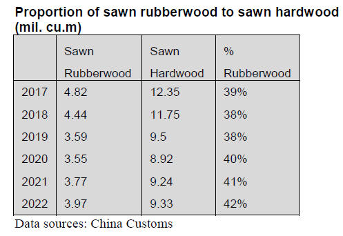rubberwood is the largest single category of sawn