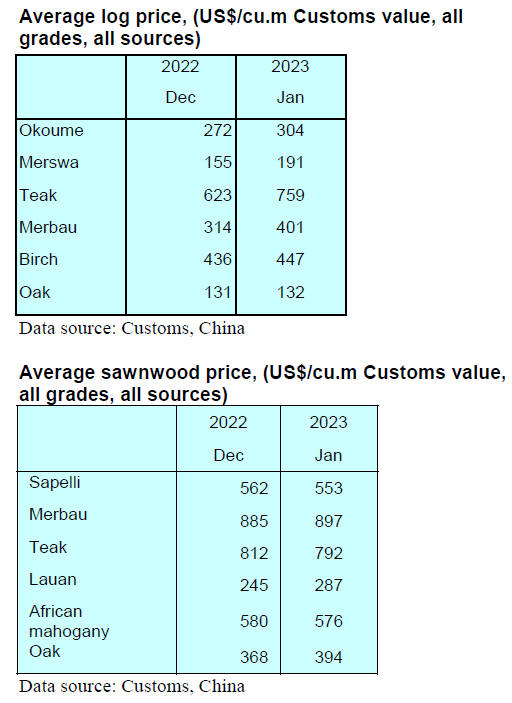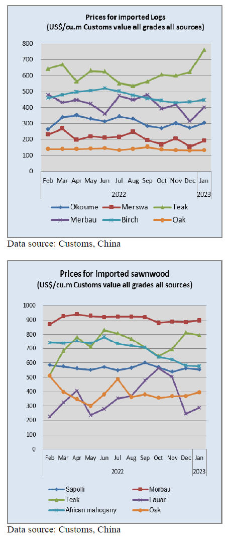 lowest at US$250 per cubic metre in 2022. China’s sawn