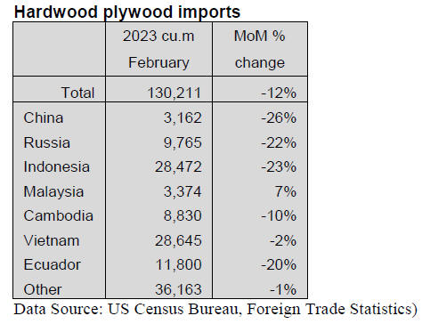 imports from Brazil, Malaysia, and Cameroon fueled the
