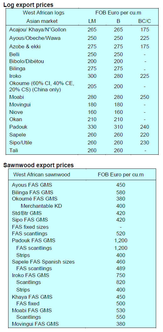 Export benchmark prices - Merbau sawnwood price increased by US$300