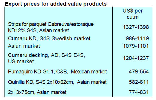 Overall export prices suffered a strong retraction and closed March with an average of US$804 per tonne, which represented a 36% drop in relation to the previous month according to AIMEX (Association of Timber Exporting Industries in the State of Pará).