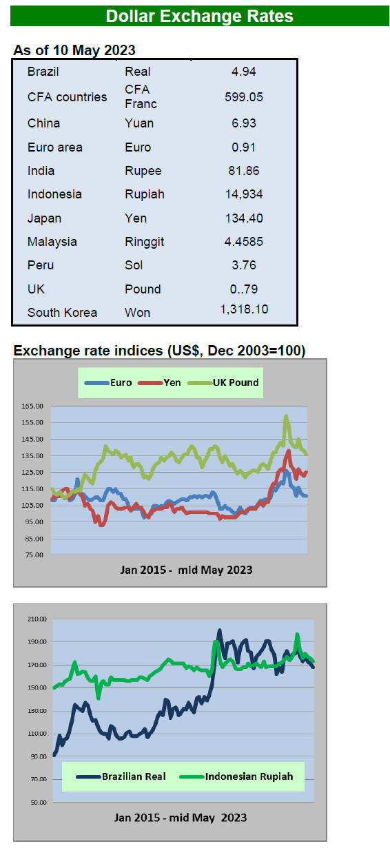 In the first quarter 2023 prices for wood products exported by CEMAC countries (Cameroon, Congo, Gabon, Chad, CAR and Equatorial Guinea) increased by just over 4% according to the Composite Commodity Price Index (ICCPB) published by the Bank of Central African States. Most of the improvement was in the price of logs for which average prices rose 7%. Sawnwood prices also rose but by just 3.5%.