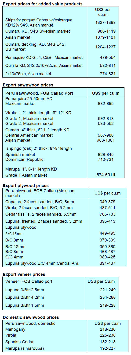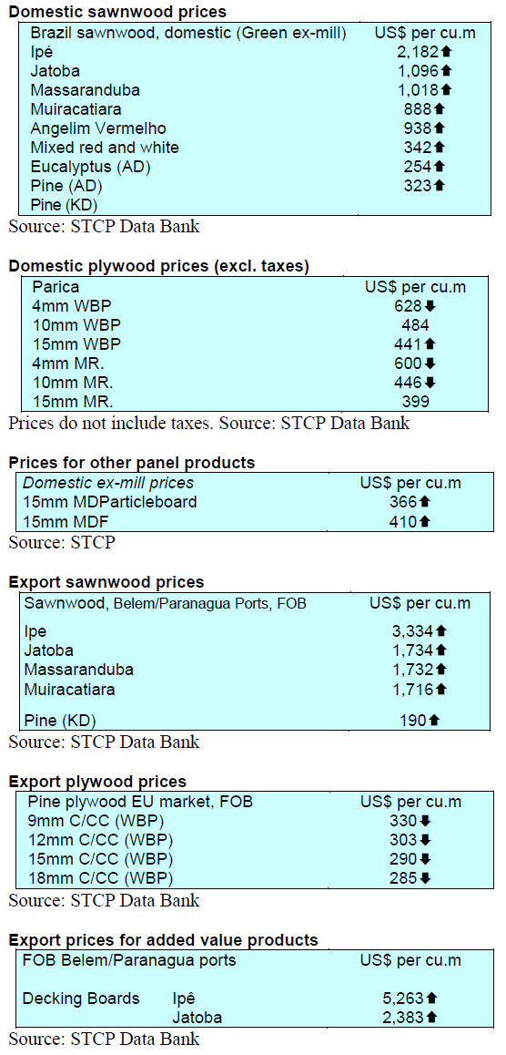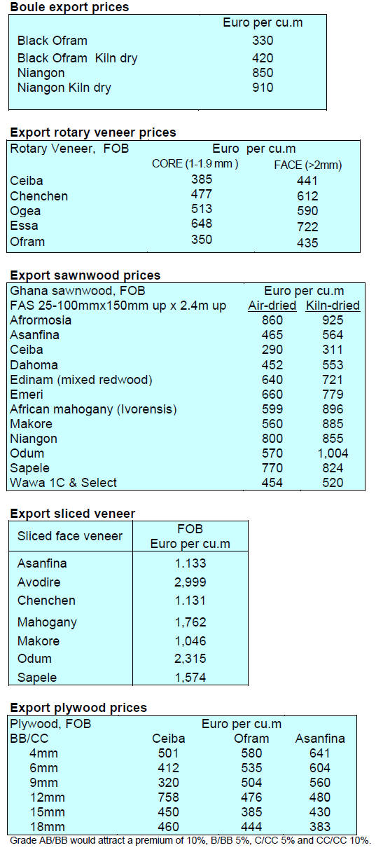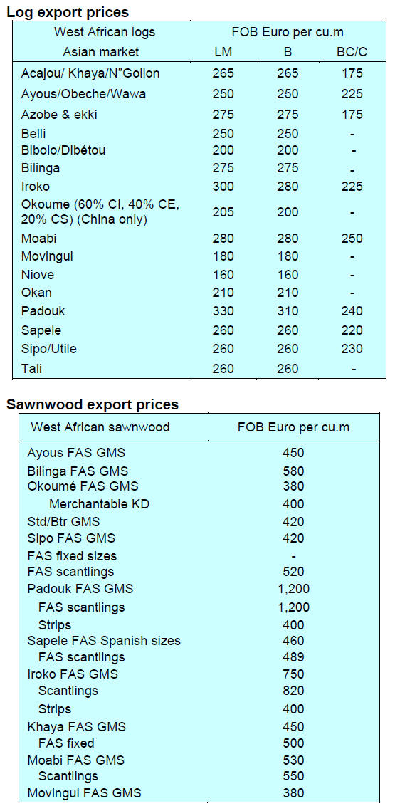 Export prices have remained stable in most markets over the past months and operators wish for an opportunity to raise prices to offset rising production costs. However, there has been downward pressure on prices from buyers in the Middle East and some Europe countries. Demand for padouk in Belgium is flat with little opportunity for shippers looking for better prices.