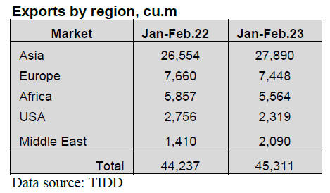 TIDD data shows that the Asian market accounted for close to 62% of all wood product exports in 2023 as against 60% recorded in 2022.